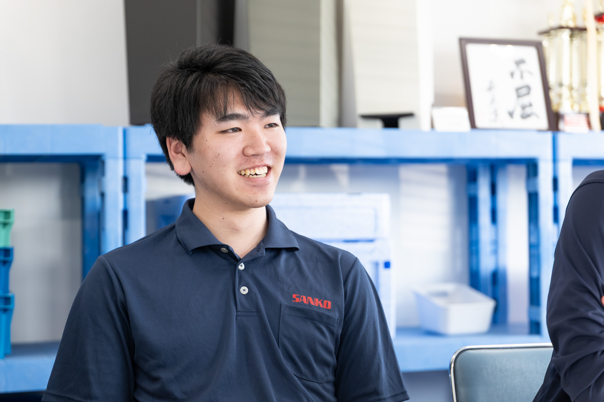 学校の求人票を見て当社に興味を持ち、直接見学に行き先輩たちが生き生きと働く姿を見ました。年齢も自分に近い人が多く、安心したことを覚えています。作業を見せてもらい、私は体を動かすことが好きなので向いていそうだと感じました。普通は複数社を受けるところですが、当社に絞って採用試験に臨みました。