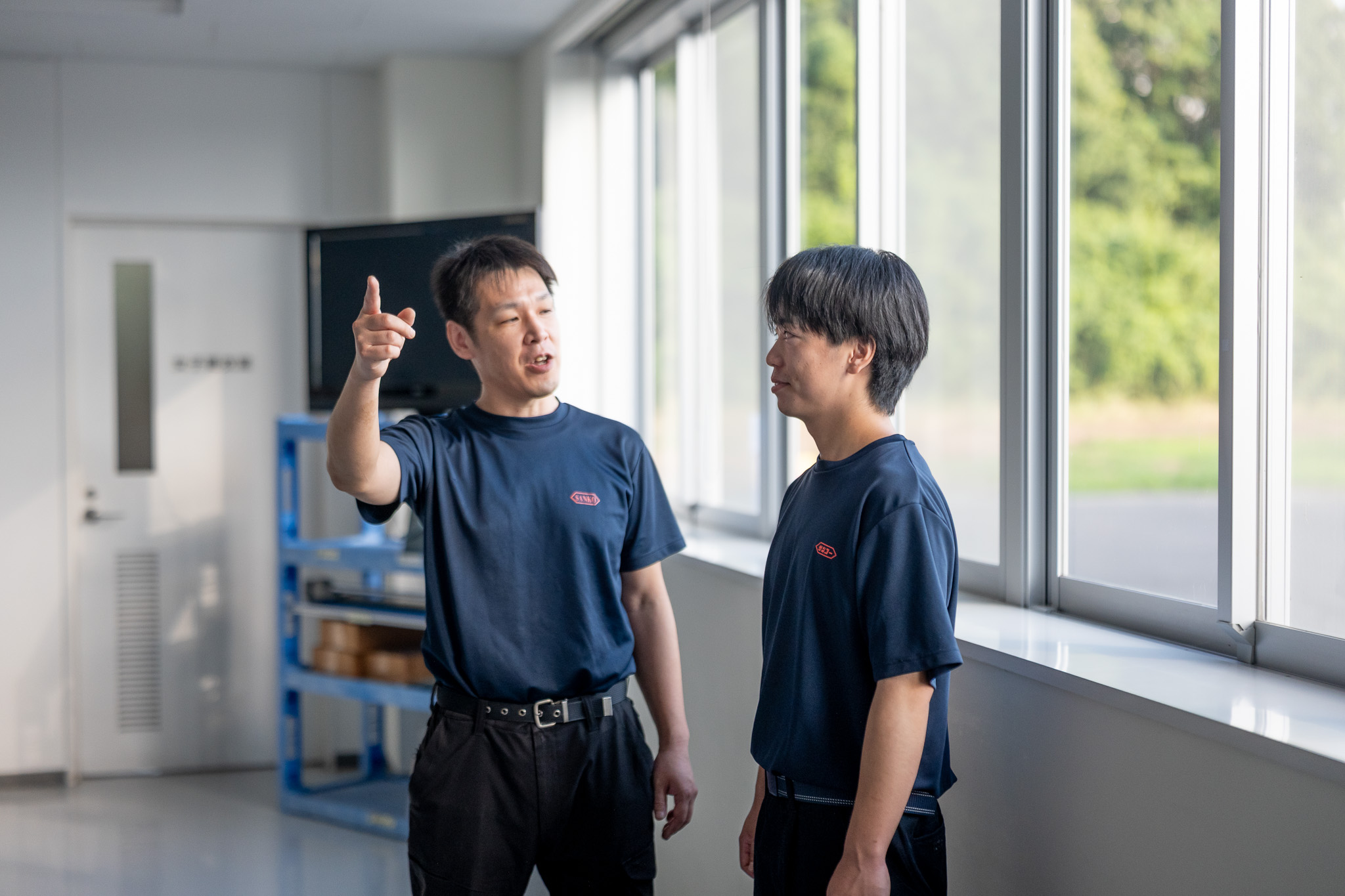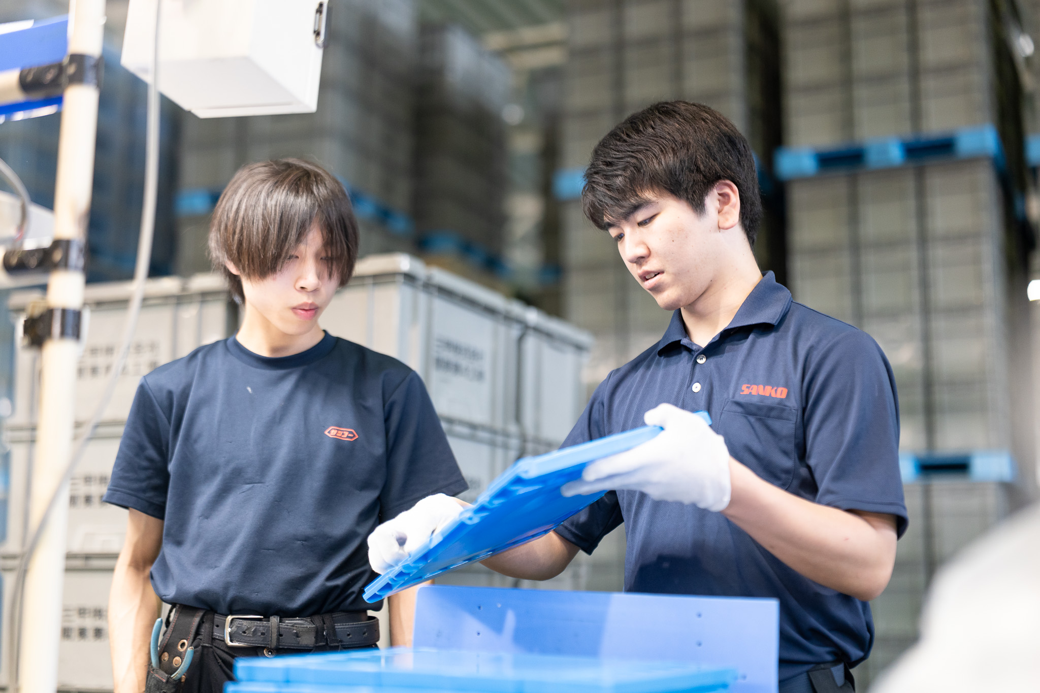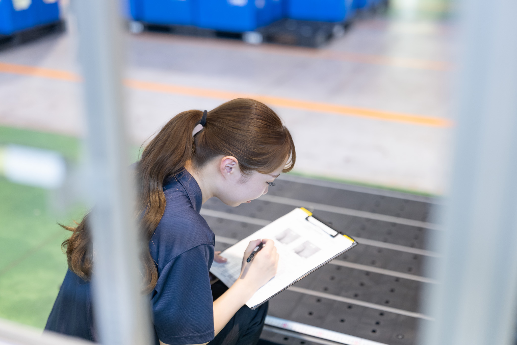 私の担当は、品質管理部門で製造工程の管理や品質検査、改善業務です。普段は上司と2人で行う検査業務が中心で、お客様が来たときは案内役も務めます。不良品を見つけたときは、自分が「最後の砦」として会社の役に立てていると実感する瞬間です。